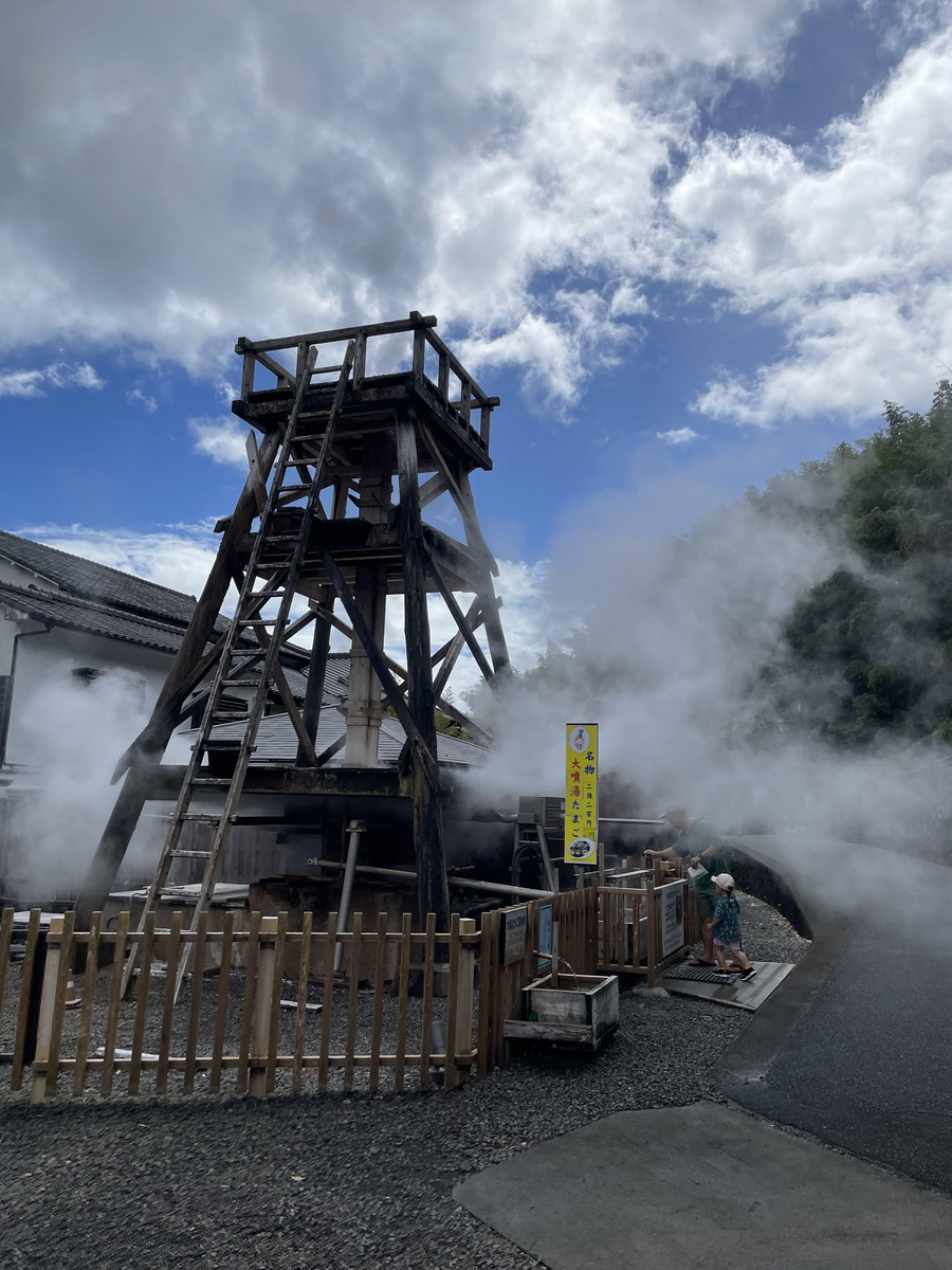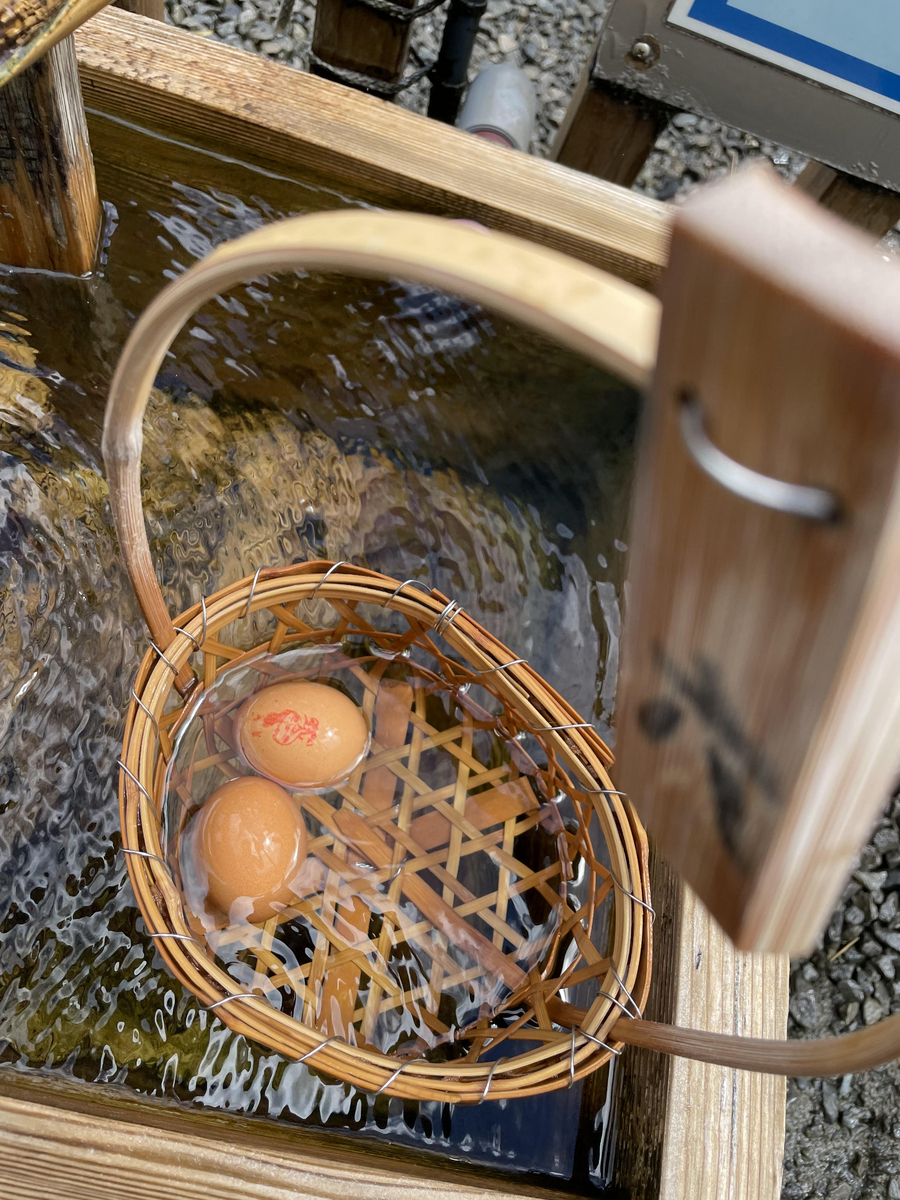 売店の優しいおばちゃんと仲良くなったところで、「温泉卵つくってみたら?」と誘ってくれたので、試してみました。卵は1個100円で購入できます。妻は卵についてはこだわりがあり、「半熟じゃないとイヤ」と常日頃が言っています。温泉卵も半熟じゃないとイヤだいうオーダーを受けまして、本来なら13分の茹で時間で完成するところを、9分の茹で時間で温泉から引き上げることにしました。娘と卵をながめながら待ち、タイマーが鳴って引き上げて実食しました。卵の中は半分かたまっていましたが、白身がまだゼリー状になっていてかなり崩れやすくなっていました。それでもほんのり塩味が感じられて、美味しかったです。最後まで、売店のおばちゃんと娘は遊んでもらい、僕らも地元の人と会話を楽しみました。
