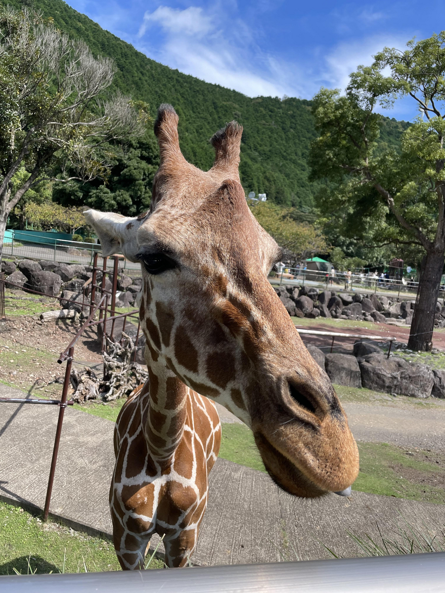 娘がキリンにエサをあげるシーンです。200円でほんのちょっぴりのエサを買えます。キリンの口元までもっていくと、キリンの黒くて長い舌がビヨ~ンと伸びてきて、草を回収していきます。キリンの舌が黒いのも知らなかったし、舌がこんなに長く伸びるのも知りませんでした。娘は大興奮でもう一回!もう一回!と結局3回エサを買いました。貴重な経験になったようで、今でも「キリンさんの舌は長いんだよ」とか「キリンさんにエサをあげたんだよね」と家に戻ってきても図鑑を見ては思い出を振り返っています。思い出はプライスレス!